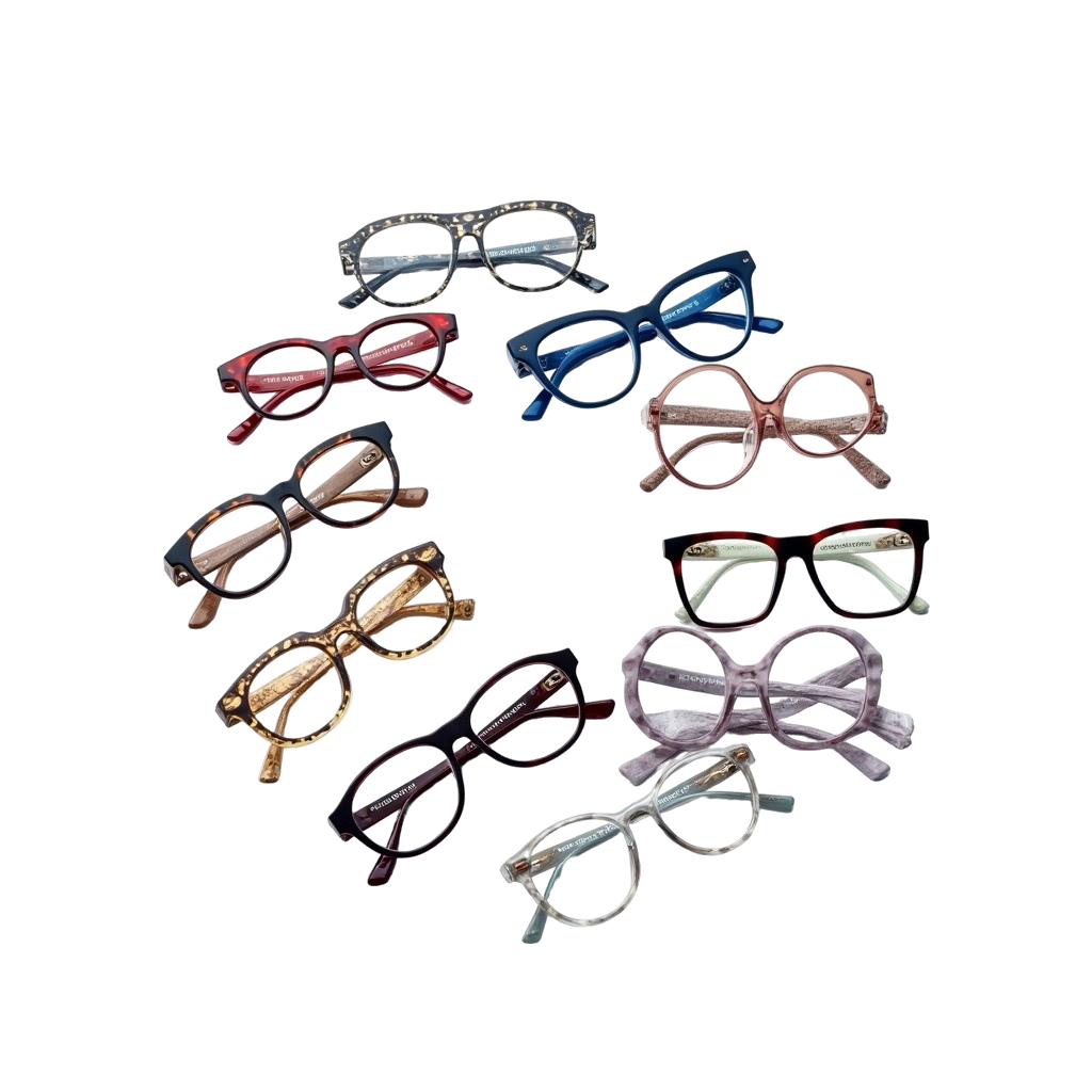 We work with premium cellulose acetate, stainless steel hinges, metal core wires, and blue block demo lenses to ensure every frame is durable, comfortable, and stylish. Our material choices reflect a commitment to both performance and aesthetics — offering lightweight comfort and long-lasting wear.